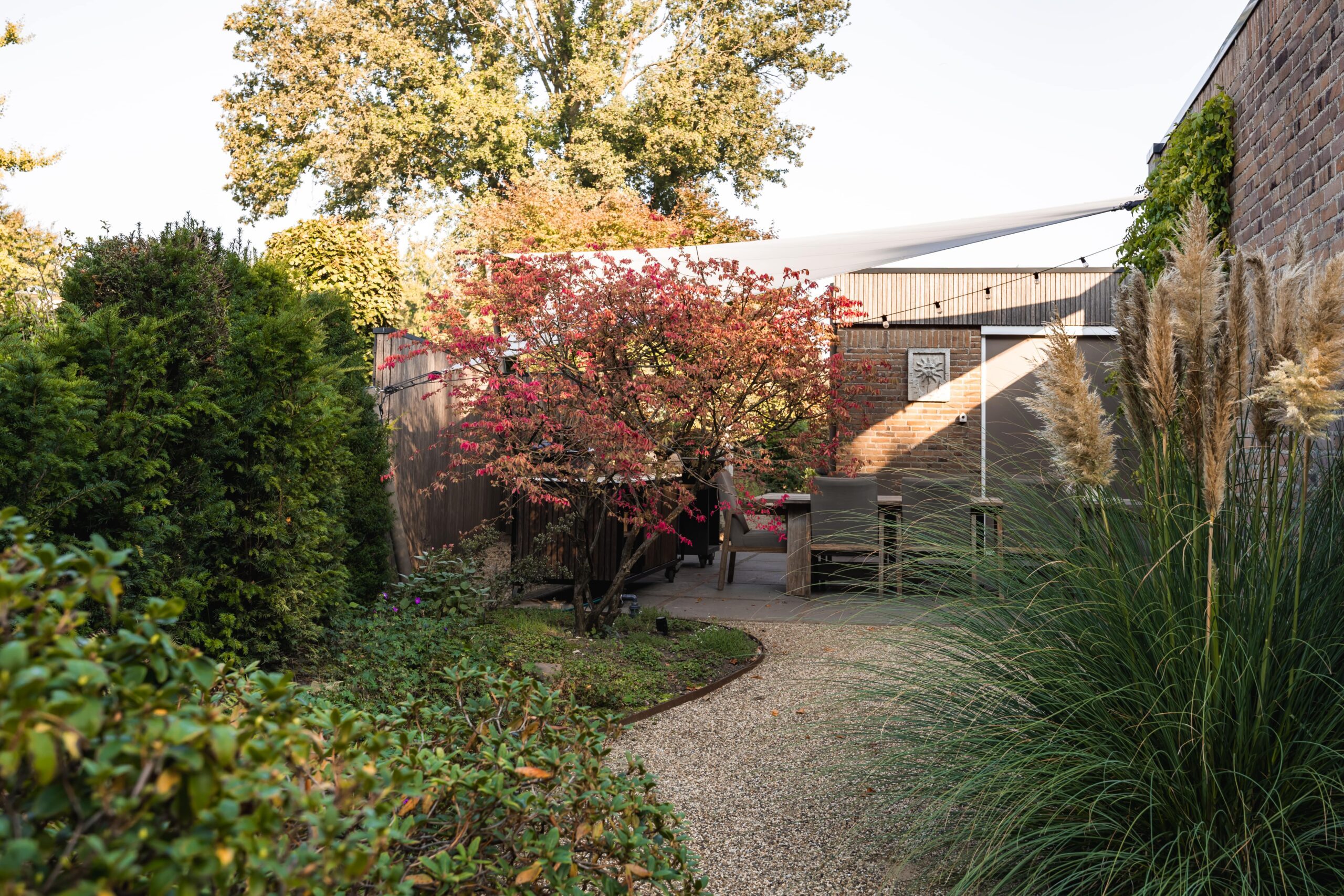 Onlangs is deze organische Japanse tuin in Uden gerealiseerd. Een bijzonder aspect is het feit dat de woning middenin een woonwijk ligt, maar dat bijna niet voelbaar is wanneer men door de tuin loopt. Vanuit elke hoek en rand wordt men omarmd met een interessante mix van planten en bomen.